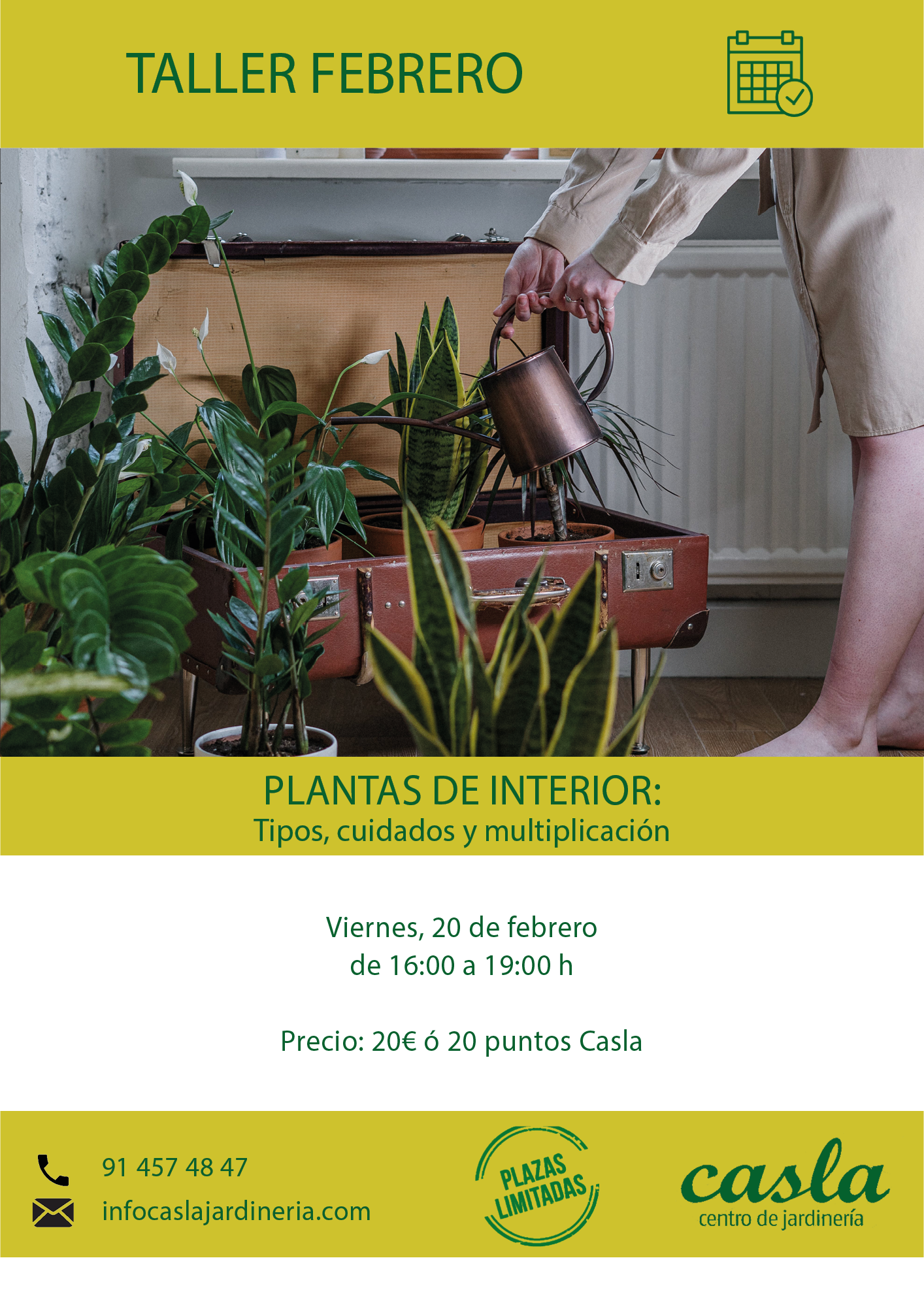 En este taller aprenderás a conocer mejor tus plantas de interior, identificar los tipos más habituales y entender qué necesitan para crecer sanas y lucir en su mejor versión.